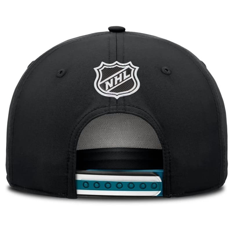 Kšiltovka s logem NHL týmu San Jose Sharks. Šestipanelová kšiltovka s prohnutým prošitým kšiltem a šesti obšitými větracími otvory je vzadu vybavena plastovým páskem na úpravu velikosti. Na čele zdobí kšiltovku výrazné logo týmu. na levé straně nášivka s logem Fanatics, vzadu logo NHL a na pravé straně týmový motiv.