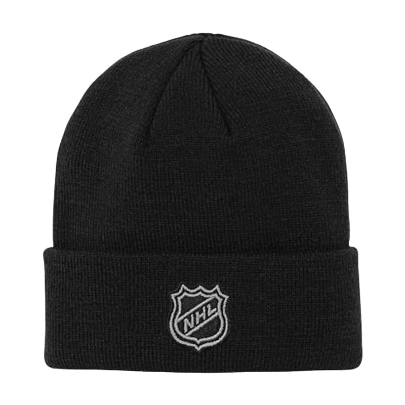Parádní jednoduchá dětská zimní čepice NHL. Zimní čepici bez bambule s manžetovým designem zdobí vepředu nášivka loga týmu a vzadu nášivka loga NHL.