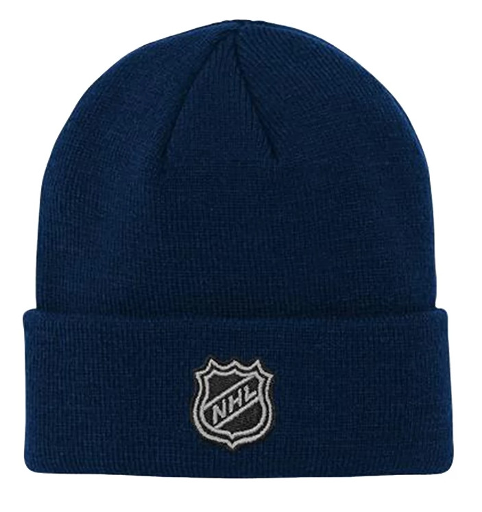 Parádní jednoduchá dětská zimní čepice NHL. Zimní čepici bez bambule s manžetovým designem zdobí vepředu nášivka loga týmu a vzadu nášivka loga NHL.