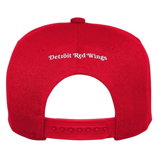 Dětský hokejový snapback NHL v červené barvě s rovným kšiltem a plastovým páskem pro úpravu velikostí.