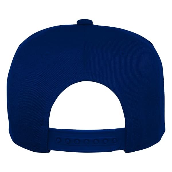 Dětský hokejový snapback NHL v modrá barvě s rovným kšiltem a plastovým páskem pro úpravu velikostí.