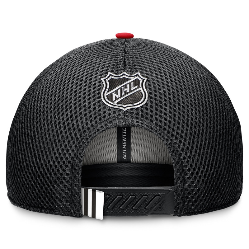 Kšiltovka z kolekce Authentic Pro Draft 2024 s logem NHL týmu Chicago Blackhawks. Šestipanelová kšiltovka s 6 obšitými větracími otvory a s prohnutým prošitým kšiltem je vybavena v zadní síťovinové části plastovým páskem na úpravu velikosti a na levé straně ji zdobí výšivka značky Fanatics, na pravé straně silikonová zkratka týmu a vzadu holografické logo NHL.