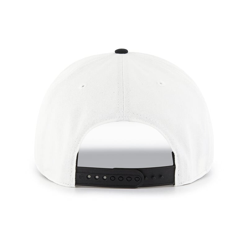Hokejová čepice NHL s mírně zahnutým kšiltem v bílém provedení s černým kšiltem. Výšivka na přední straně. Vyrobeno z bavlněné tkaniny. Vzadu plastový pásek pro úpravu velikostí.