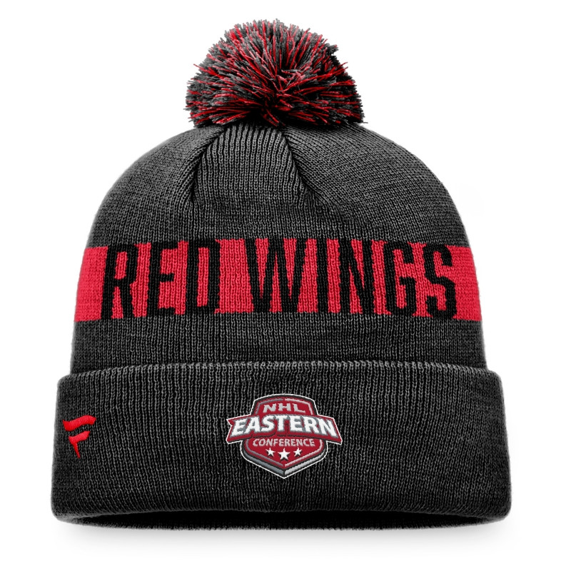 Parádní hokejový kulich NHL v černém provedení s bambulí a ohrnem. Vyšité logo týmu na přední straně a vzadu vyšitá konference.