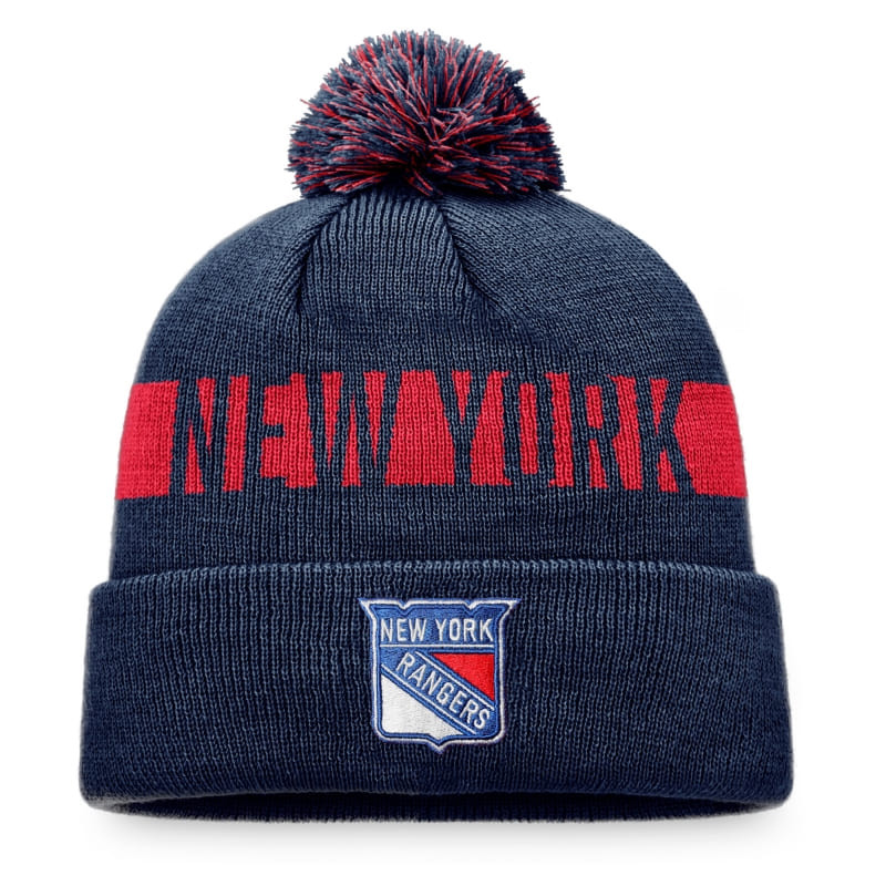 Parádní hokejový kulich NHL v tmavě modrém provedení s bambulí a ohrnem. Vyšité logo týmu na přední straně a vzadu vyšitá konference.